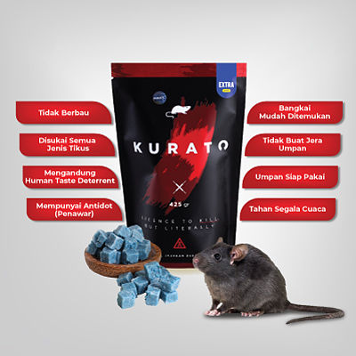 Keamanan :Memiliki zat pemuntah (Human Taste Deterrent) yang tidak disukai selain tikus, serta memiliki penawar (antidot) , sehingga Kurato tidak akan membahayakan manusia dan hewan peliharaan.