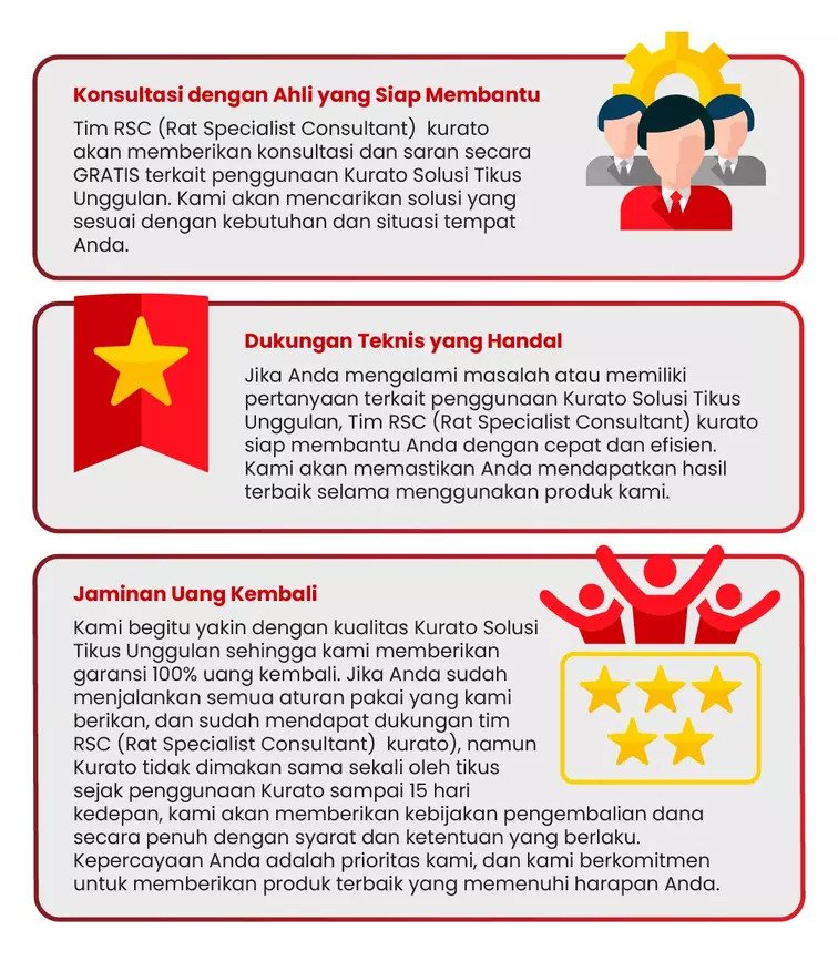 Kurato tidak hanya menyediakan produk berkualitas, tetapi juga pelayanan yang melebihi ekspetasi anda melalui tim RSC (Rat Specialist Consultant) kami yang meliputi: