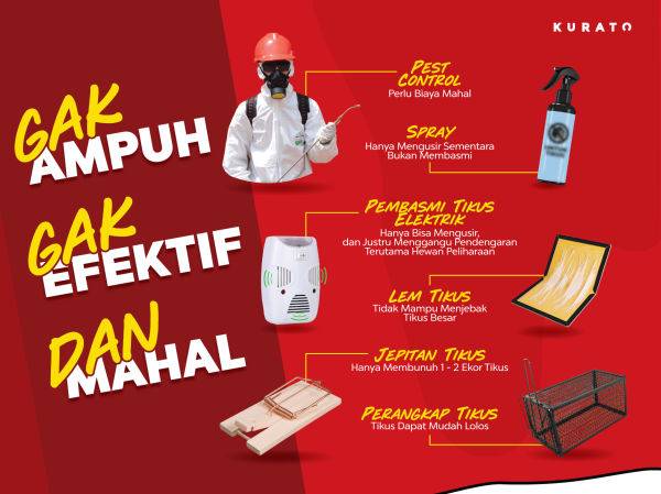Dengan Kurato. Anda tidak memerlukan lagi perangkap tikus, lem tikus, racikan khusus. Artinya cukup 1 produk, Anda telah menghemat waktu & tenaga.